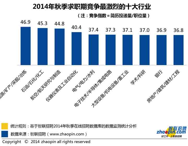 2、2014年秋季全國競爭最激烈的十個行業