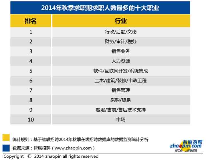 2、2014年秋季全國競爭最激烈的十個職業